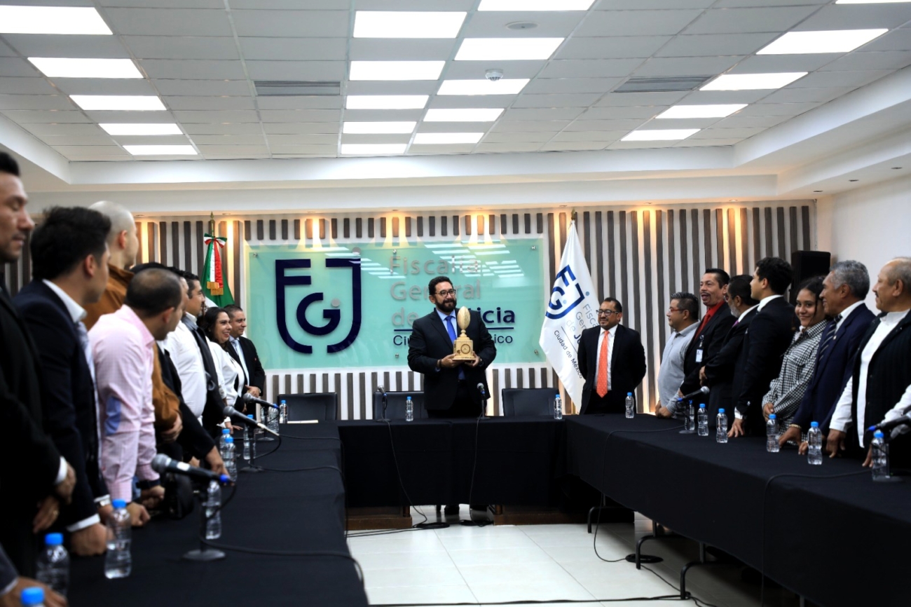 24/10/2024. El Coordinador General de Investigación Territorial, en suplencia, por ministerio de Ley, de la persona titular de la Fiscalía General de Justicia de la Ciudad de México (FGJCDMX), Ulises Lara López, recibió al equipo de fútbol americano de la institución, «Huracanes», quienes recientemente se convirtieron en los campeones de la Edición 2024 de la Liga Humanista.