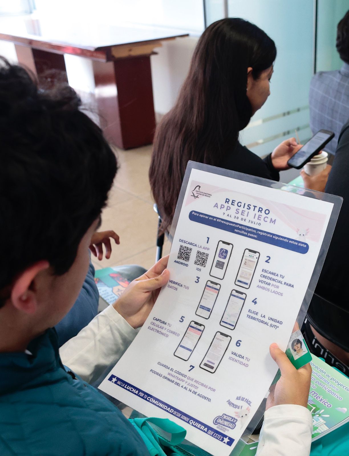 Además, destacó que las *personas originarias de la Ciudad de México que viven en el extranjero podrán emitir su opinión* desde sus *dispositivos móviles*. Para ello, será necesario *descargar la aplicación “IECM SEI” y registrarse antes de las 17:00 horas del miércoles 30 de julio.*