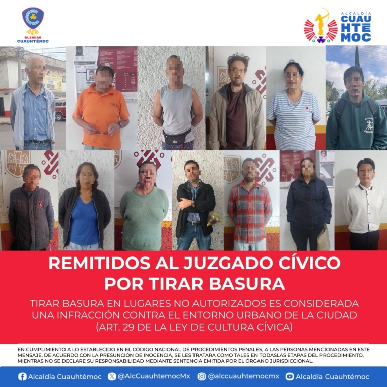 CDMXCiudad de MéxicoEN LA CUAUHTÉMOC POR TIRAR BASURA EN LA CALLE REMITEN A 13 PERSONAS AL JUZGADO CÍVICO0 Comments1 Min Read* Las detenciones ocurrieron en Santa María la Ribera, Obrera y Doctores. * La acción forma…