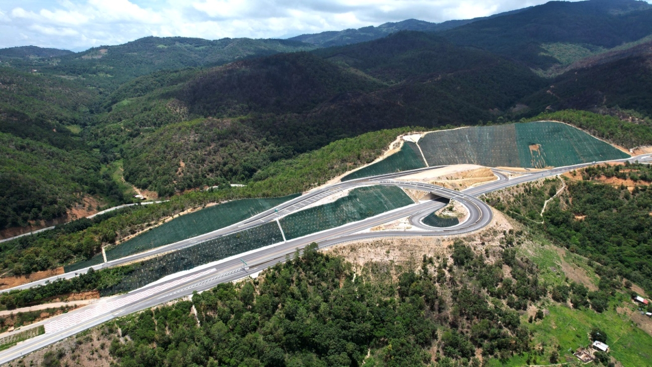 Esteva Medina resaltó la complejidad técnica de la carretera cuyo trazo cuenta con 15 pasos vehiculares, 10 túneles con 1.6 km, el más extenso es “El Tornillo”, de 250 metros; así como 20 entronques que representan cerca de 30 km de gasas vehiculares; 79 puentes y viaductos con una longitud de 6.5 km con altura de entre 15 y hasta 110 metros el más alto.