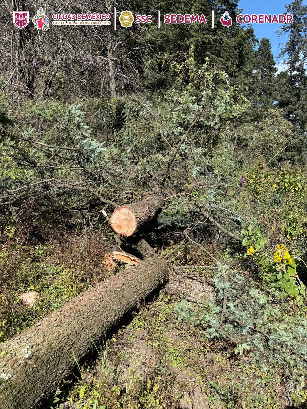 Ciudad de México a 16 de diciembre de 2024. Como parte de las acciones derivadas de la mesa de trabajo interinstitucional contra la tala ilegal en la alcaldía Tlalpan, este lunes 16 de diciembre de 2024 el Gobierno de la Ciudad de México (GOBCDMX), la Secretaría del Medio Ambiente (SEDEMA), a través de la Dirección General de la Comisión de Recursos Naturales y Desarrollo Rural (DGCORENADR), en coordinación con la Secretaría de la Defensa Nacional (SEDENA), la Guardia Nacional (GN), la Procuraduría Federal de Protección al Ambiente (PROFEPA) y la Dirección General de Inteligencia Policial de la Secretaría de Seguridad Ciudadana (SSC), llevaron a cabo un operativo en el “Paraje Abrevadero”, bienes comunales de Santo Tomás Ajusco, alcaldía Tlalpan, en el que se detuvo a un hombre por posible tala clandestina de árboles.