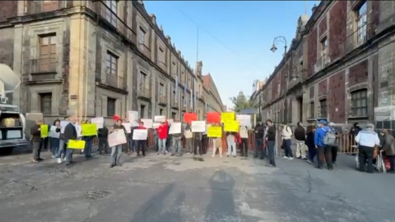 Conductoras y conductores de plataformas digitales protestaron esta mañana en inmediaciones de Palacio Nacional para demandar libertad y certeza para prestar sus servicios en el Aeropuerto Internacional de la Ciudad de México (AICM).