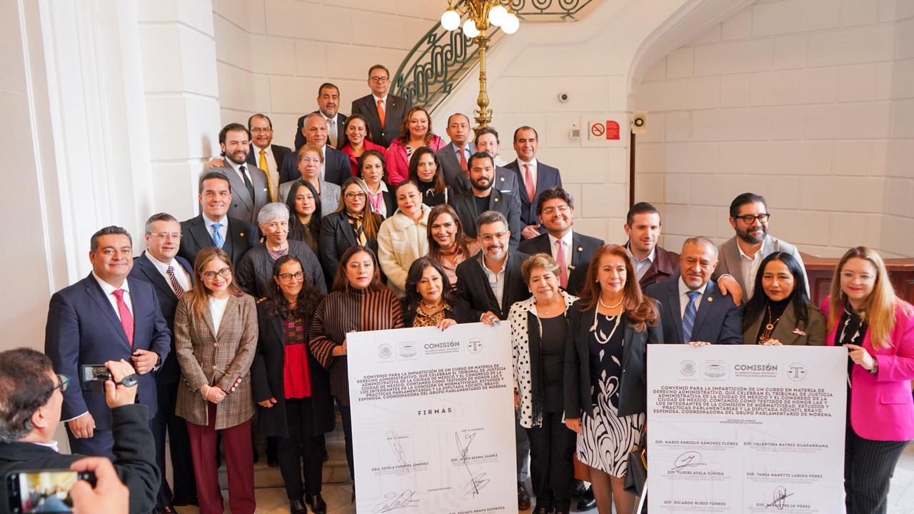 Finalmente, el legislador Jesús Sesma agradeció a la Magistrada Presidenta, a todas las personas del Tribunal de Justicia Administrativa que “hicieron posible este esfuerzo. También quiero reconocer a las diputadas y diputados que participan como testigos de honor en este importante acuerdo: la diputada Xóchitl Bravo Espinosa, Coordinadora del Grupo Parlamentario de Morena y el legislador Víctor Hugo Lobo, Presidente de la Comisión de Normatividad, Estudios y Prácticas Parlamentarias de este órgano legislativo”.