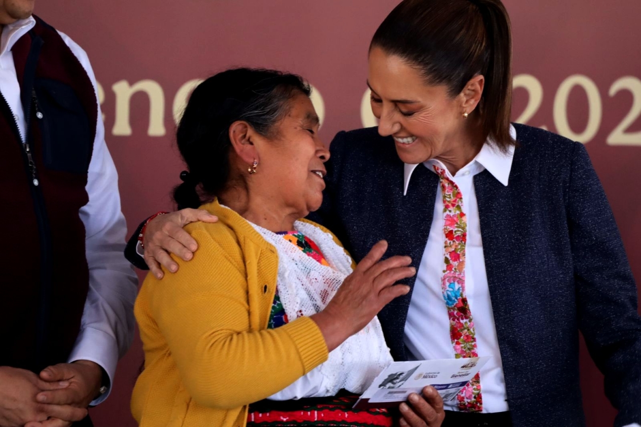 Las y los nuevos derechohabientes de la Pensión Mujeres Bienestar Lucía Vega Rosales y Juana Ángeles Hernández; y de la Pensión para el bienestar de las Personas Adultas Mayores Eduardo Enrique Arjona y Ceballos, así como José Heriberto Benjamín Rivera Cortés, recibieron de manos de la Presidenta Claudia Sheinbaum y la secretaria Ariadna Montiel, su tarjeta del Banco del Bienestar.