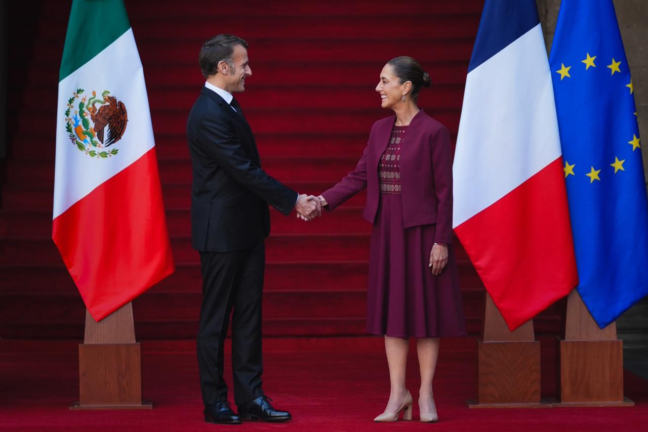 La Presidenta de México, Claudia Sheinbaum Pardo, recibió en Palacio Nacional a su homólogo de la República Francesa, Emmanuel Macron.