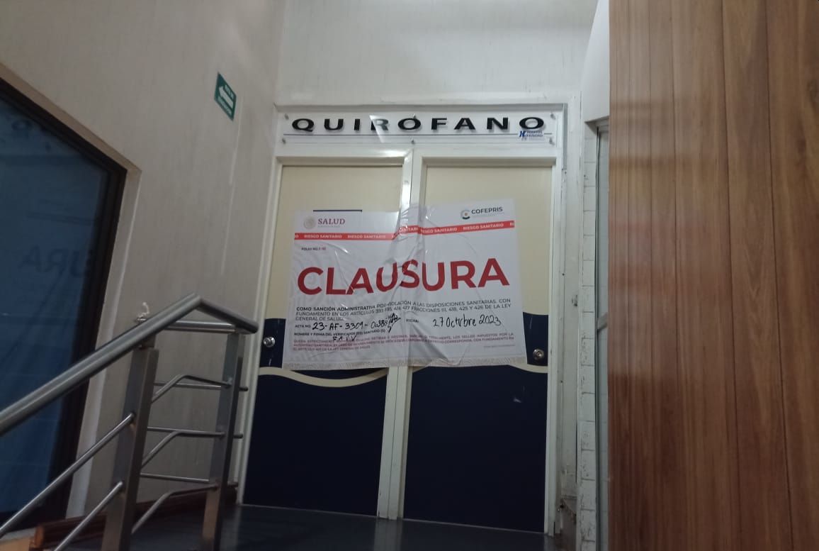El 16 de junio de 2023 fueron suspendidos y el 27 de octubre del mismo año clausurados los cuatro quirófanos con los que cuenta; volvieron a poner sellos de clausura el 26 de abril del año pasado luego de una denuncia de los propios trabajadores del hospital para no involucrarse en el ilícito y tras la revisión, Cofepris comprobó que los sellos habían sido violentados.
